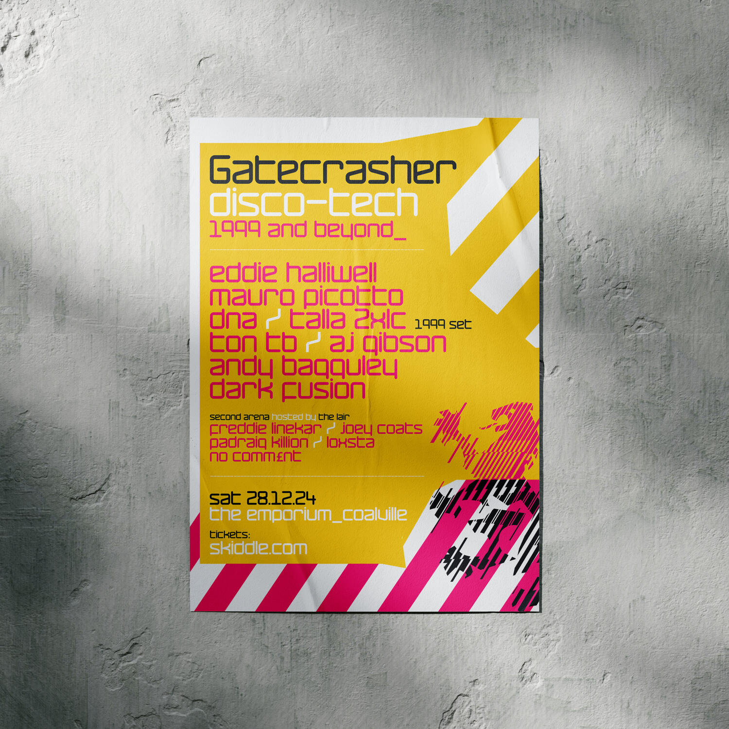 For Gatecrasher’s legendary Disco-Tech event, we brought their iconic energy into a fresh visual campaign.From bold poster artwork to high-impact social media, merch, and even the tickets in your hand — every detail carried that unmistakable Gatecrasher vibe.